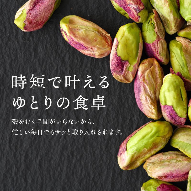 懐健康も美味しさも、家族の笑顔も、全部手に入れたい!そんなあなたのために、自然の恵みをそのままに「殻なし素焼きピスタチオ」をお届けします。この機会に、美味しくてからだに嬉しいピスタチオを、毎日の生活に取り入れてみませんか?