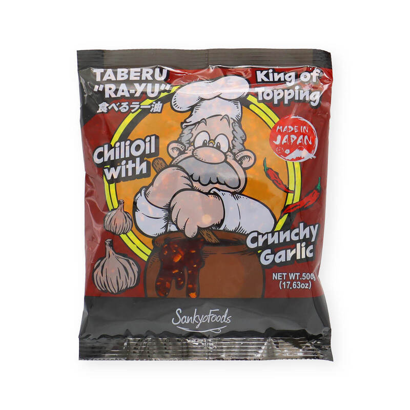食用調合油(食用大豆油、食用なたね油)(国内製造)、食用ごま油、フライドガーリック(ガーリックフレーク、食用こめ油)、とうがらし、乾燥たまねぎ、粉末醤油、砂糖、みそ、すりごま、パプリカパウダー、食塩/調味料(アミノ酸)、酸化防止剤(V.E)、(一部に小麦・ごま・大豆を含む)
