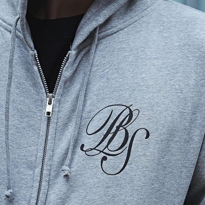 Men's Zip-Front Hoodie for Fall and Winter, Long Sleeve, Stylish, Stretch, Perfect for Sports, Training, Casual Wear, Korean Street Style, Cool Print Logo, Loungewear, and Outdoor Activities (B10-GY-S)
