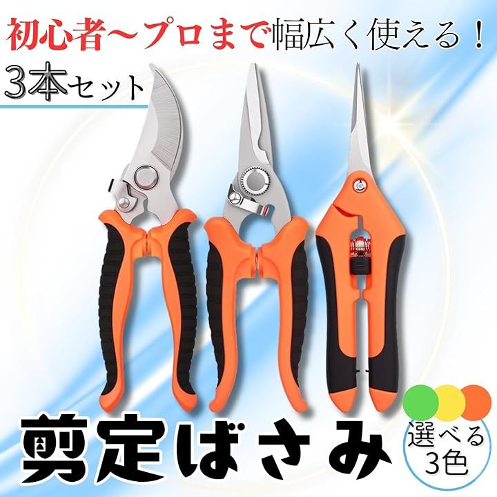 「庭木・果樹・花木に最適|剪定ばさみ3本セット」 剪定ばさみ・剪定鋏・枝切りばさみ・園芸はさみとして使える3本セット。