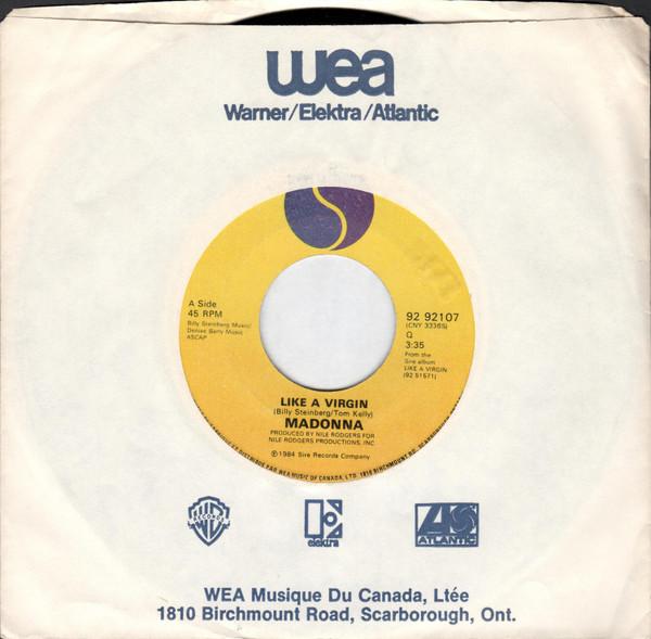 ・アーティストMadonna・タイトルLike A Virgin / Stay・レーベル・型番Sire 9292107・フォーマット7インチレコード・コンディション(盤)良い (VG+)・コンディション(ジャケット)プレインカバー(元ジャケット/カバー無し)・コンディション(帯)オビなし・特記事項【盤に薄い跡】
