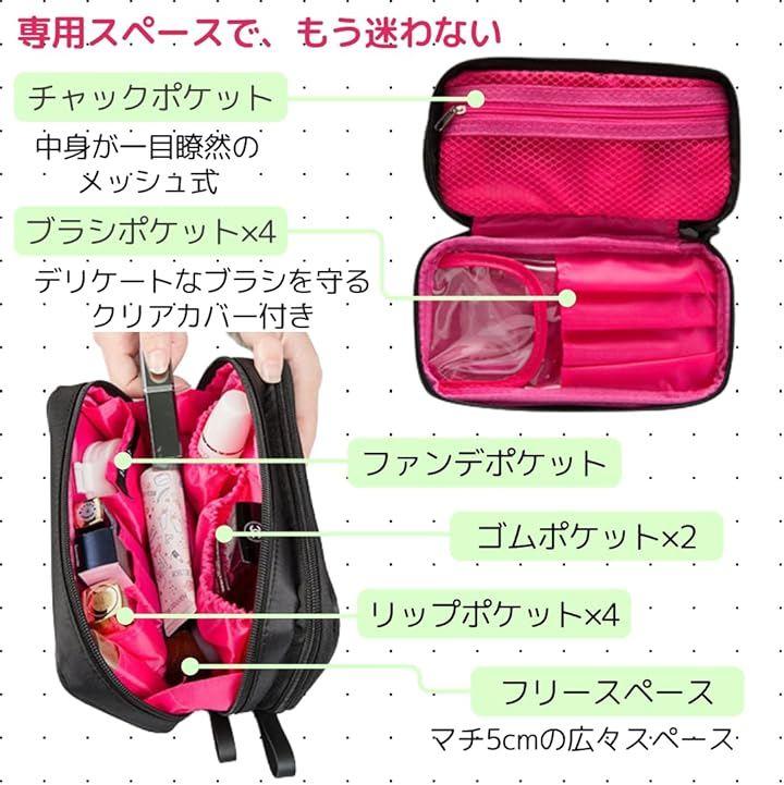 「計算された多機能ポケット」メイク道具収納に特化した大小の仕切りが、驚くほどの整理整頓力を実現。