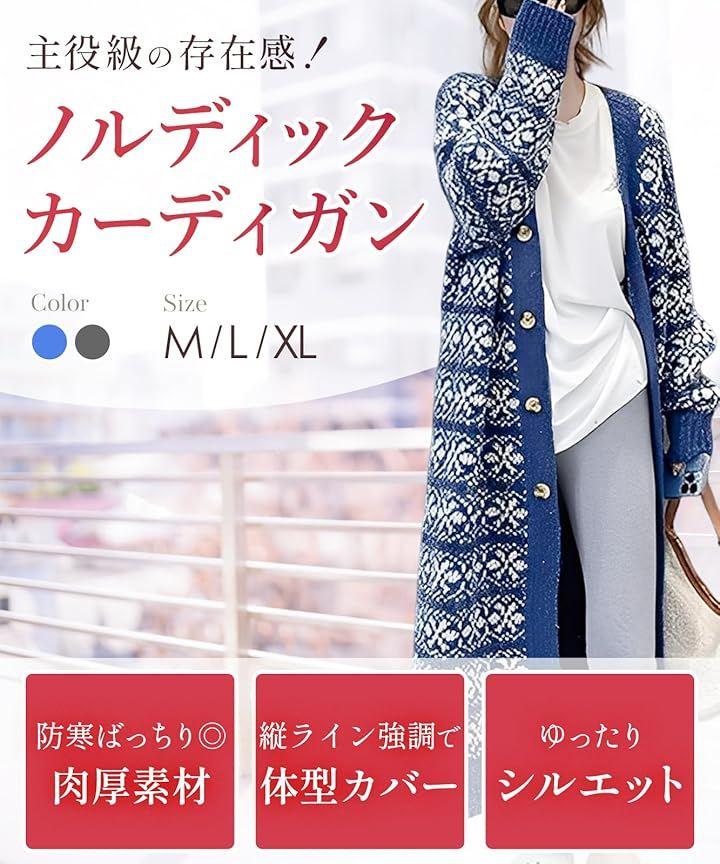 寒い季節にぴったりの北欧柄ロングカーディガンが登場しました。目に映えるカラーで、シックでありながらも華やかな印象を与えます。