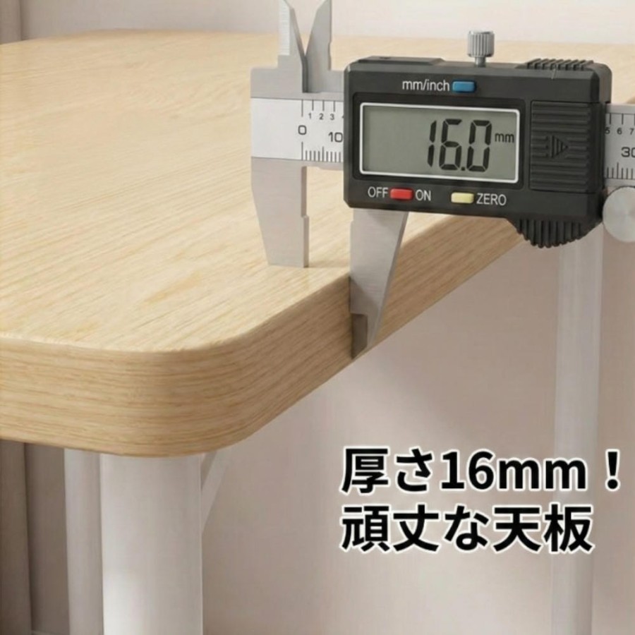 厚さ約16mmの頑丈な天板と、安定感のある脚構造で、