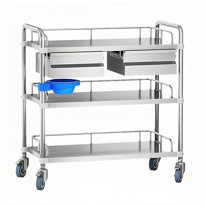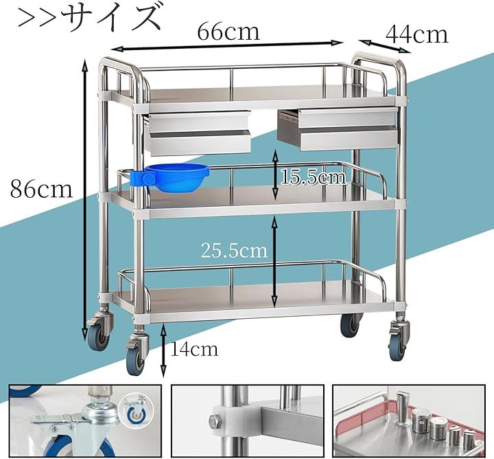 引き出し付きで、薬品や医療器具を簡単に整理し、必要なものをすぐに取り出せます。