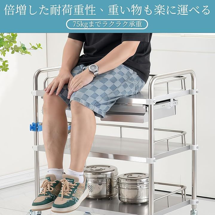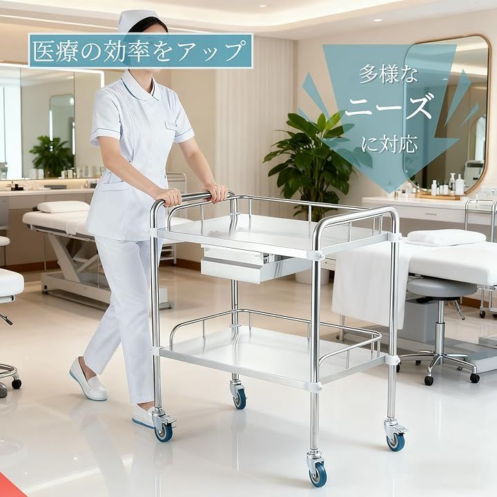 患者ケア、医療機器運搬、薬品収納など、すべての医療従事者のニーズに応える設計です。