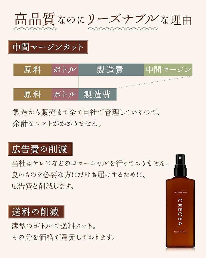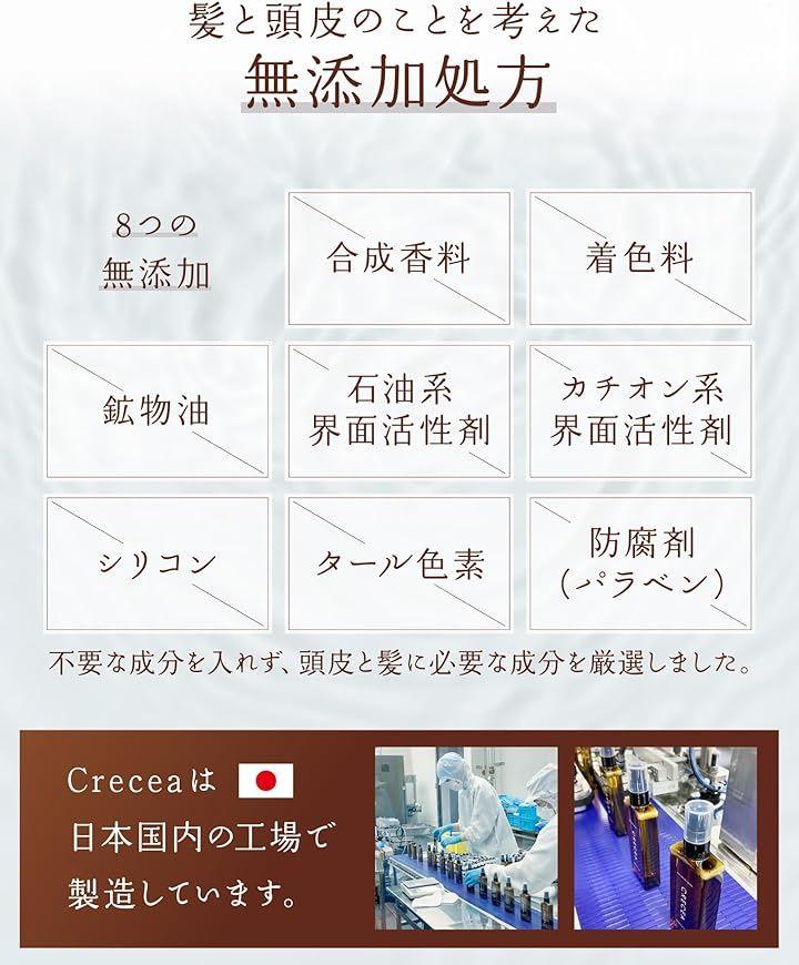 「薬用育毛ミスト」Creceaは有効成分を配合した医薬部外品処方。