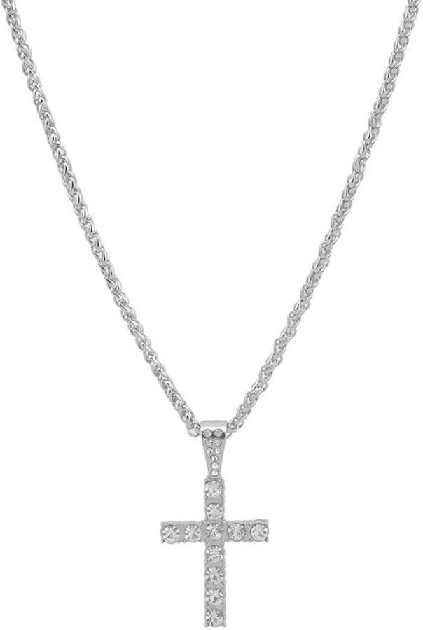 キュービックジルコニアが施された存在感たっぷりの十字架デザインに、お洒落なロングチェーンがアクセントを加えています。