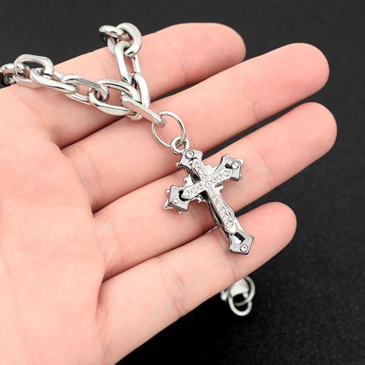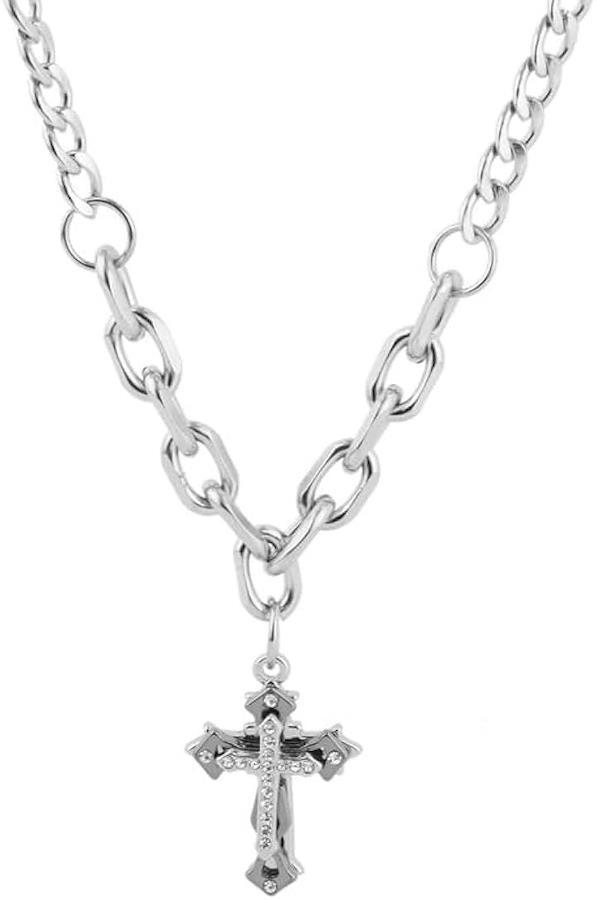 「サイズ」ネックレス長:約53cm / 十字架サイズ:約3cmx 約2.5cm / チェーン幅:約0.6cm 中央部:約1cm