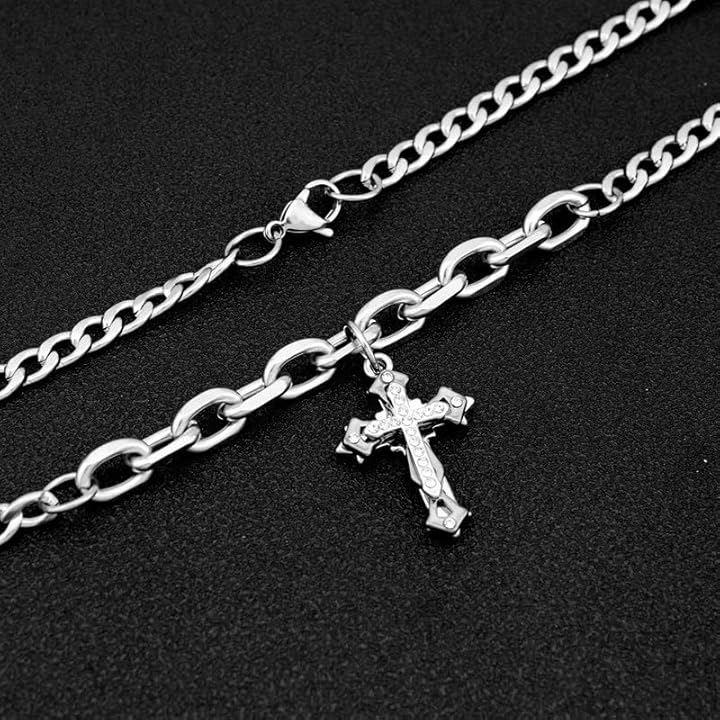 「デザイン」シンプルでありながら存在感抜群の十字架ネックレスが登場。メンズにおすすめのデザインで、ステンレス素材のチェーンがお洒落さを引き立てます。