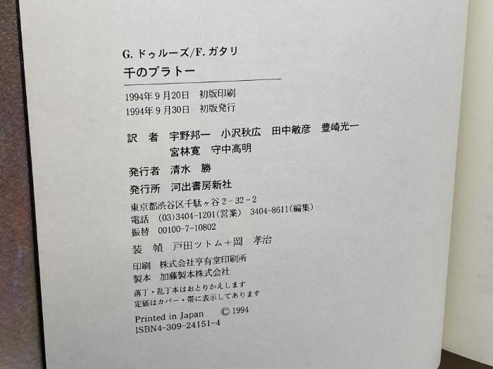 商品名:千のプラトー: 資本主義と分裂症 河出書房新社 ジル ドゥルーズ