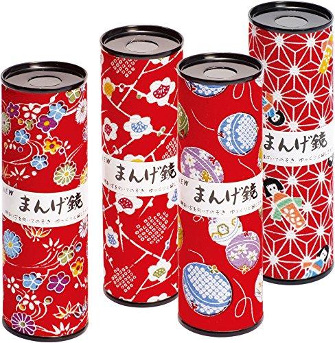 万華鏡は、円筒の中に長方形の鏡をを三角に組み、きれいな色紙などの小片を入れたものです。 その筒を手でまわしながら、筒の端の穴からのぞくと、いろいろに模様が変化します。 日本では、にしきめがね、ひゃくいろめがね、ばんかきょう。また、外国では、カレイドスコープと言います。 最初の万華鏡(カレイドスコープ)は、200年ほど前の1816年にイギリスの物理学者デイビッド・ブリュースター(1781~1863)により、発明されたんですよ。 ブリュースターは、灯台の光を遠くまで届かせるため、鏡を組み合わせていて、万華鏡を発明したそうです。当時は大人気で、売り出すと、3ヶ月で30万個も売れたそうです。 日本にもすぐ伝わり、3年後の文政二年(1819年)には「紅毛渡り更紗眼鏡流行 大坂にて贋物多く製す」と「摂陽奇観」に書かれていることから、「外国からの万華鏡がはやり、大阪で偽物がたくさん作られた事が分かります。さすが、大阪ですね。 この頃は、日本史で習った「化政文化」の頃で、東海道中膝栗毛などの町人文化が盛んでした。江戸時代でも、華やかな頃ですね。 さて、明治時代には、にしきめがね、ひゃくいろめがね、と呼ばれたそうです。 なお、現在は、鏡ではなく、アルミの薄い板が入っています。安全ですね。 サイズ 直径4.5センチ×高さ15センチ 60g 説明書 ありません。箱 ありません。 画像は4つ写っています。柄は、数種類ありますが、一つです。 おまかせください。