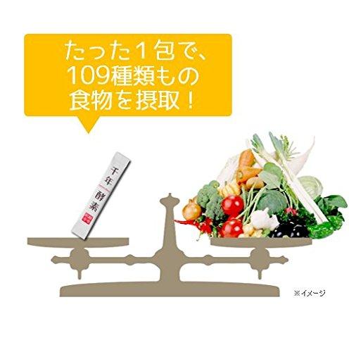 ■サイズ:??11.7x7.2x4.7cm;50g 酵素(109素材)、生きた酵母、生きた乳酸菌が入った栄養機能食品 【内容量】1,000mgx30包 /日本製 8年連続モンドセレクション金賞!2012~2019年 2度のインターナショナル・ハイクオリティー・トロフィー受賞!2014,2017年 ■重要なお知らせ安全上のお知らせ○食生活は、主食、主菜、副菜を基本に、食事のバランスを。○開封後はできるだけ早くお召し上がりください。○乳幼児の手の届かないところに保管してください。○植物性の原料を使用しているため、製品の色調にばらつきが生じる場合がありますが、品質に影響ありません。○アレルギーのある方、疾病のある方、通院中の方はご使用の前にかかりつけの医師にご相談ください。○お体に合わない場合はご使用を中止してください。○本品は特定保健用食品と異なり、消費者庁長官による個別審査を受けたものではありません。○本品は、多量摂取により疾病が治癒したり、より健康が増進するものではありません。一日の摂取目安量を守ってください。○ビタミンB1は、炭水化物からのエネルギー産生と皮膚や粘膜の健康維持を助ける栄養素です。○1日あたりの栄養素等表示基準に占める割合:ビタミンB1 80~240%○運動と共に効率的なダイエットを目指す方に理想的だと思われる栄養成分(酵母、植物発酵エキス)を主原料とした栄養機能食品です。ダイエットには栄養・カロリーを考えた食事と適度な運動が必要です。原材料・成分植物発酵エキス末、難消化性デキストリン、ビール酵母、抹茶末、コレウスフォルスコリエキス末、生菌乾燥末、ウコンエキス末、ビタミンB1含有酵母、緑茶エキス末、(原材料の一部に大豆、バナナ、やまいも、りんごを含む)使用方法1日に1~3包を目安に水・ぬるま湯等と一緒にお召し上がりください。本品は食品ですのでいつお召し上がり頂いても問題はありません。ご注意(免責)> 必ずお読み下さい※類似品にご注意ください※千年酵素の正規販売店は「シーエスシー」のみです。「シーエスシー」以外からご購入された場合の品質保証および、リニューアル前の旧商品や中古品が届くといったトラブル等には一切のご対応をいたしかねます。