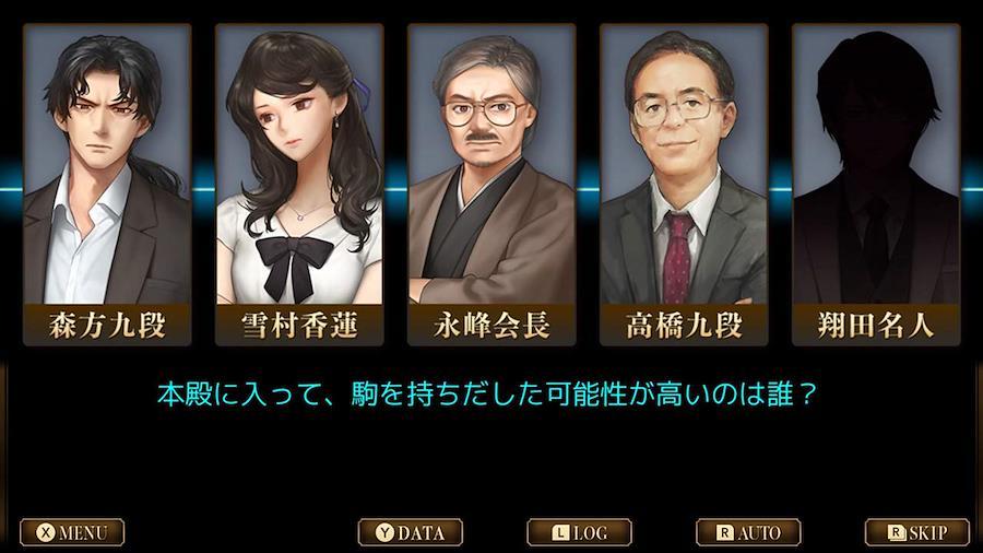 将棋を知らなくても楽しめる! ドラマティックな推理ミステリー7人の実在人気棋士が出演する、現代将棋界を舞台にしたミステリー&将棋バトル。シナリオは「フォークスソウル」の宮下英尚、音楽は「逆転裁判3.5.6」の岩垂徳行が担当。将棋がわからなくても楽しめる安心設計と深いドラマ性で話題になった原作を大きく更新、長編の新シナリオや将棋教室など充実の内容で家庭用ゲーム機向けに登場!