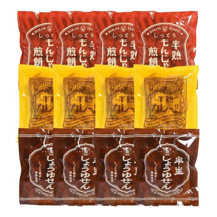 Soft-boiled and half-boiled senbei 3 types x 4 bags Total 12 bags Curry Monja Soy Sauce