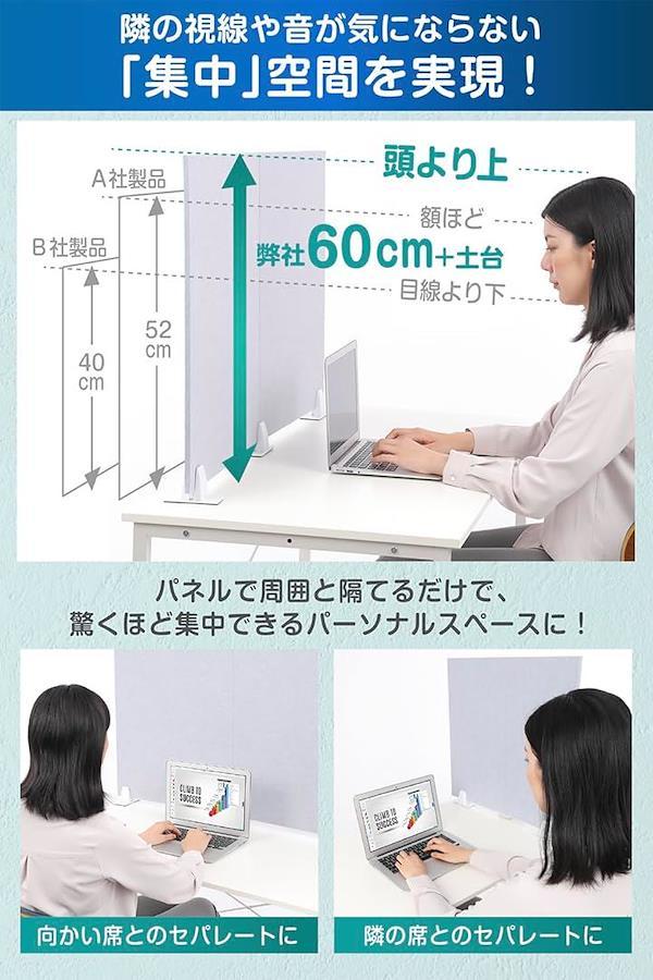 視線が気にならない集中空間 : 卓上から高さは一般的な40~50cmでは無く、60cm にアップグレード。