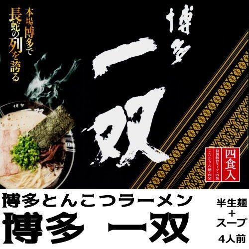 博多の行列のできるラーメン屋「一双」の4食セットです。お土産用やご自宅用としてなど様々な場面でご利用ください。