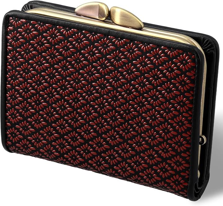 伝統美の印伝技法と縁起紋「 菱菊 」が彩る優美な印伝がま口財布です。