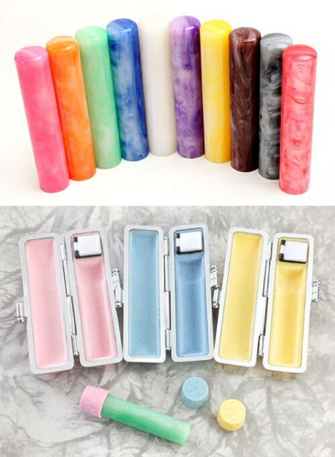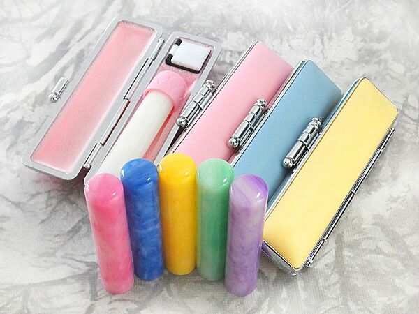 ■大人気の蝶貝カラフル印鑑と、ケース内を汚さない印面キャップが付いた“ずっときれい”印鑑ケースがセット♪