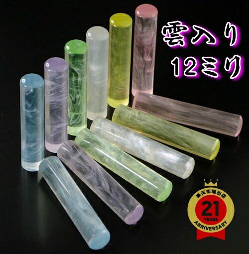 透明クリスタルの中に雲が見える、かわいい印鑑です。