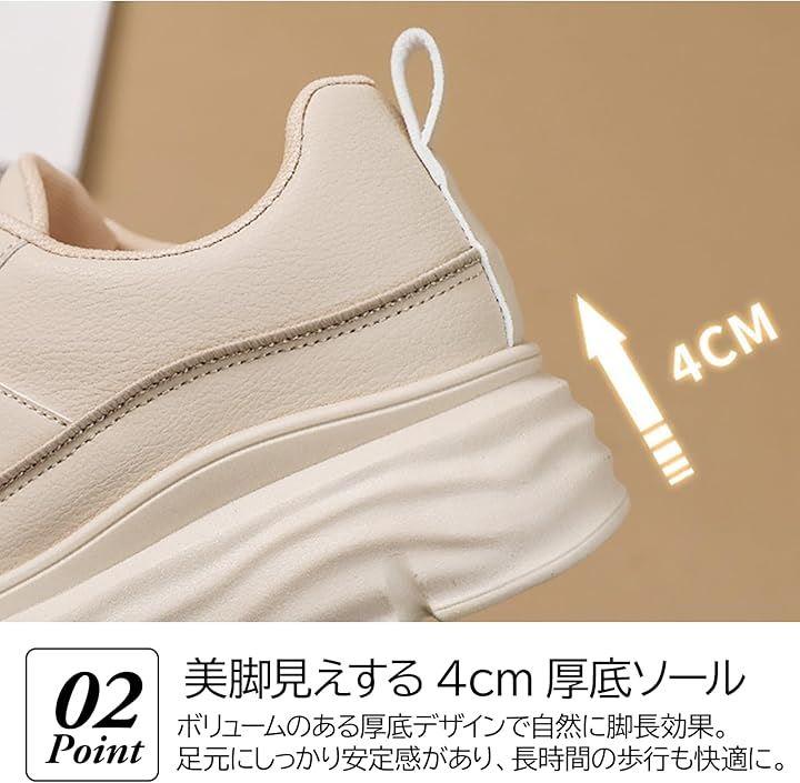「脚長効果のある4cm厚底ソール」 安定感のある約4cmの厚底ソールで自然に脚を長く見せ、美脚効果も。