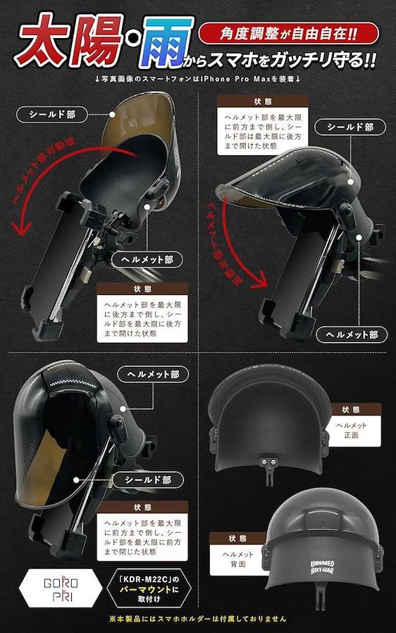 「スマホサンシェード」本製品はバイク用スマホホルダーに取付け可能な「後付けタイプ」のサンシェードとなります。