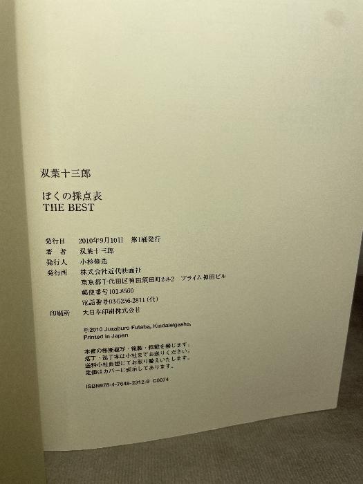 a04-251215002012015-000双葉十三郎 ぼくの採点表 The Best 近代映画社 双葉 十三郎双葉先生が映画雑誌“スクリーン”に50年に渡って書き続けてきた人気連載「ぼくの採点表」から、☆☆☆☆以上という高得点の作品153本を完全収録! 1940年代の作品から2000年まで、半世紀以上にも渡る作品の中から、双葉先生が「これぞ!」と思った作品の集大成です。9784764823129<%% SHIPPING %%>表紙に多少のスレ、があります。本は良好です。※注意事項※■商品・状態はコンディションガイドラインに基づき、判断・出品されております。■付録等の付属品がある商品の場合、記載されていない物は『付属なし』とご理解下さい。※