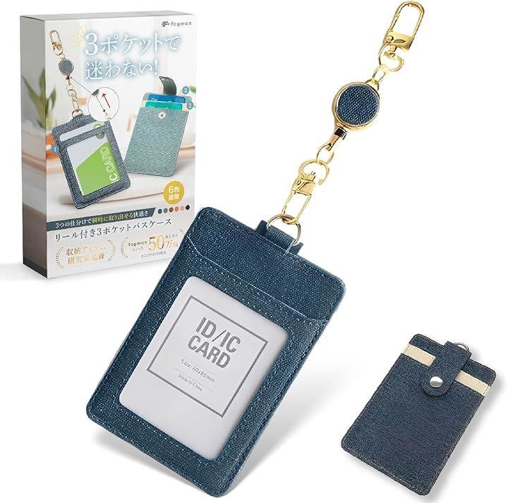 「商品仕様」PUレザー素材、サイズ:縦約11cmx横約7.5cm、カードポケットx3、金属製リール付き(30cm)、ストラップ付属、カラー:6色