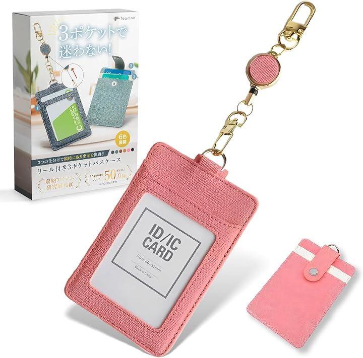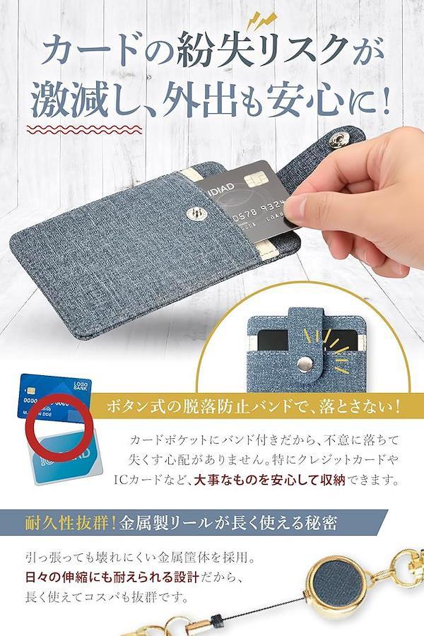 「商品仕様」PUレザー素材、サイズ:縦約11cmx横約7.5cm、カードポケットx3、金属製リール付き(30cm)、ストラップ付属、カラー:6色
