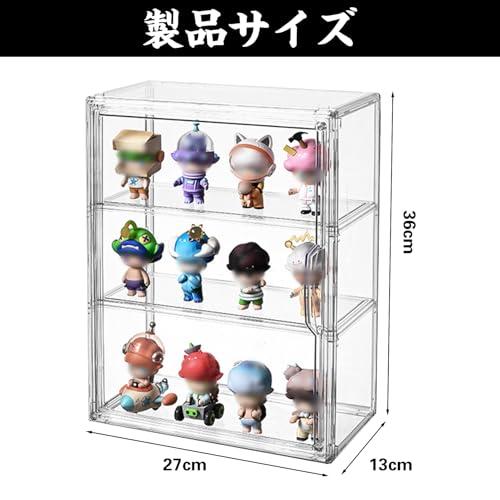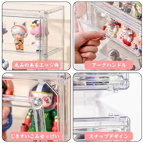 【おしゃれな透明デザイン】収納ボックスは丸ごと透明で、ショーケースとしても使えます。おしゃれな透明デザインは高級感が溢れ、完璧なディスプレイが演出できます。フィギュアや化粧品などのディスプレイに最適。透明なデザインで中身が見え、内側に2重のはしごがついており、ケースに溝のあるスロットデザインを採用しているため、積み重ねても安定感があり、倒れにくい。 磁石付きのフロントドアで、取るのがとても便利です。 【卓上式】卓上に起きオッケーです。シンプルであるが上品さ満々のフィギュアケースです。コーディネートが自由で省スペース、収納が美しい、アクリルディスプレイケースの組み立てが簡単です。 接着剤は必要ありません。 ガタがない。 側面に梯子を上下に連結して組み立て、組み立てるのに数分しかかかりません。お好みに合わせて集められるコレクション性の高いBOXです 【優れた材質】アクリル素材を使用しています。優れた透明度と耐久性を兼ね備えた素材です。透明度が高いため、フィギュアの細部までクリアに見ることができ、コレクションの魅力を最大限に引き出します。このオーガナイザーは高品質の素材で作られています、防塵で防カビ、汚れにくく同時にお掃除も簡単です、変形や破裂などの心配は無用です。濡れや汚れがあった場合、ティッシュや雑巾でさっと拭き取れます。箱の扉は透明素材でできており、ホコリを防ぎ、中身がよく見える。 【多目的・多シーンディスプレイ】:コレクターグッズ、ミニ人気キャラクターモデル、お土産や人形などの収納に使用。カウンターディスプレイ、マーケットブース、工芸品展示会、展覧会、家の飾り、オフィスステーションの装飾などに適しています。 【多機能】ディスプレイボックスとして、人形、おもちゃ、プラモデルなどを集めるのに使える。シンプルでスタイリッシュなデザイン、完璧なディスプレイが演出できます。また、部屋やバスルーム、キッチンで、化粧品やスパイスなどの日用品を整理するのにも使える。
