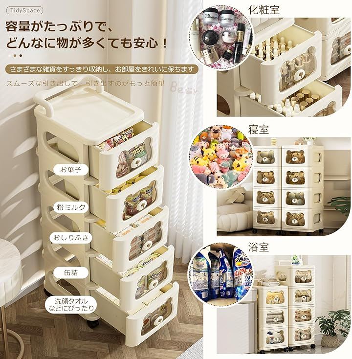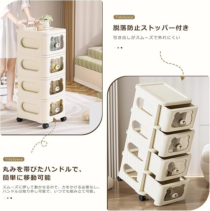 「効率的な収納」 衣装ケース 引き出しは多層設計で、日用品、小物、おもちゃなど異なる収納ニーズに対応し、垂直スペースを効率的に活用できます。