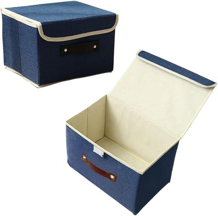 「おしゃれな折りたたみ収納ボックス」コットンリネン生地にPUレザーハンドルがついた、折りたたみ収納ボックスです。