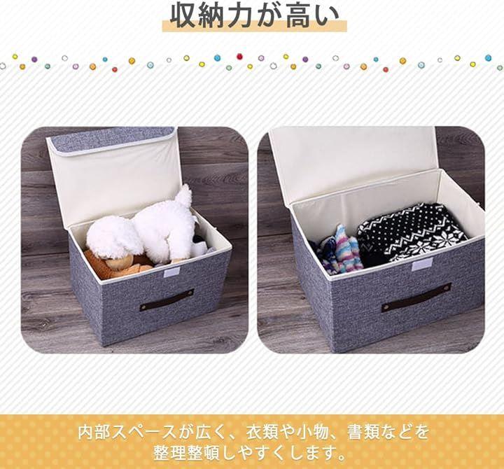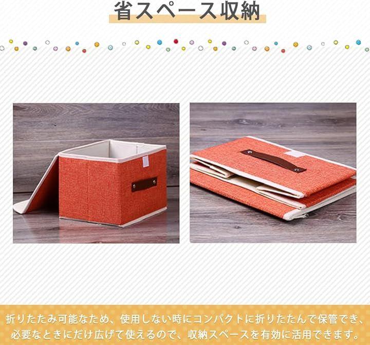 「おしゃれな折りたたみ収納ボックス」コットンリネン生地にPUレザーハンドルがついた、折りたたみ収納ボックスです。