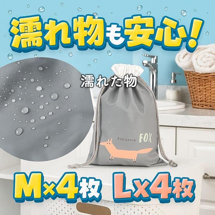 「選べる2サイズ」 Mサイズ:約39x31cm(小物・下着用)、Lサイズ:約36.5x45cm(衣類・タオル用)。