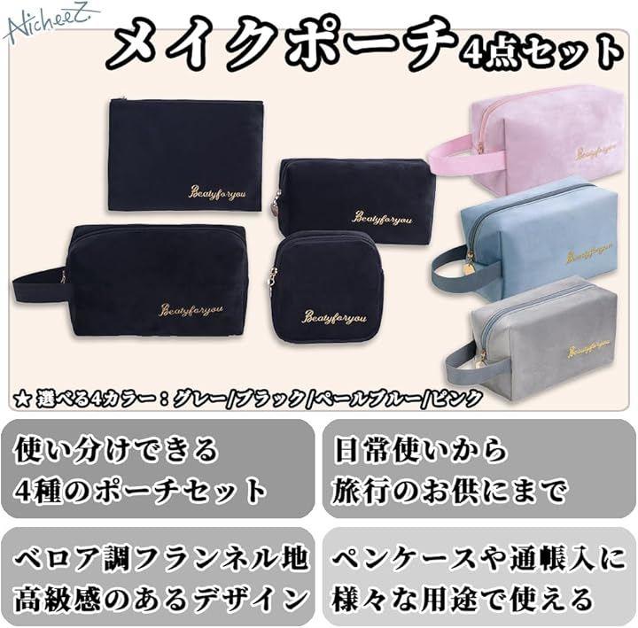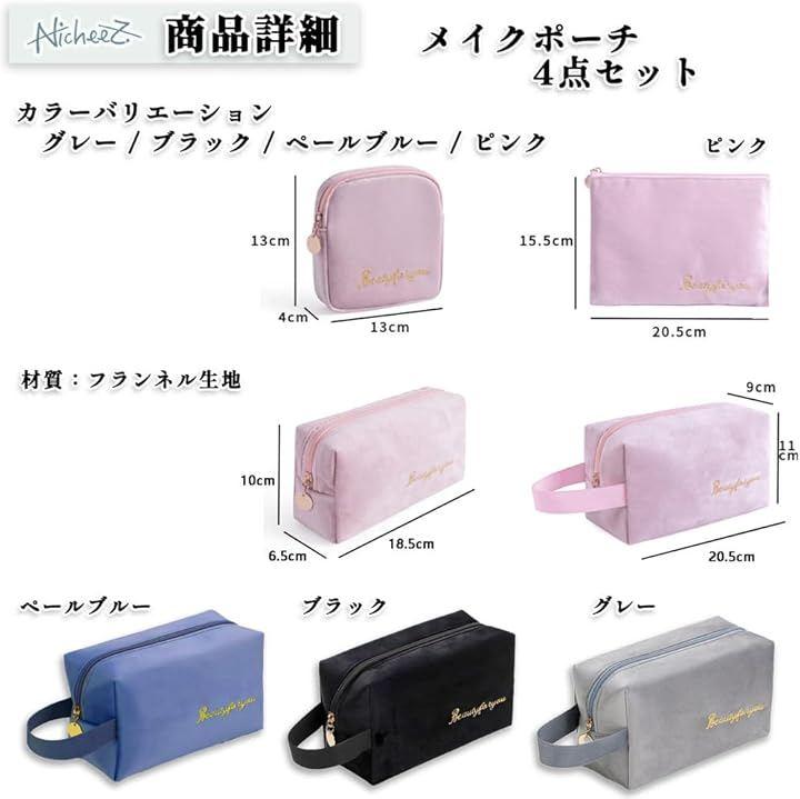 サニタリーポーチ・小物ポーチ・化粧ポーチなど様々な用途にも使える4個セット。