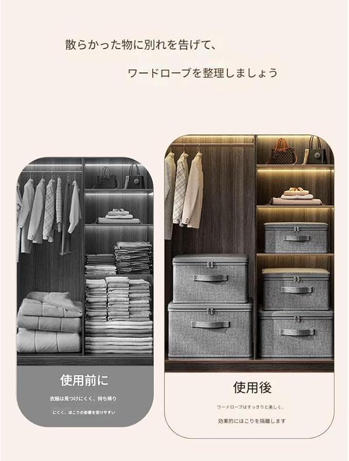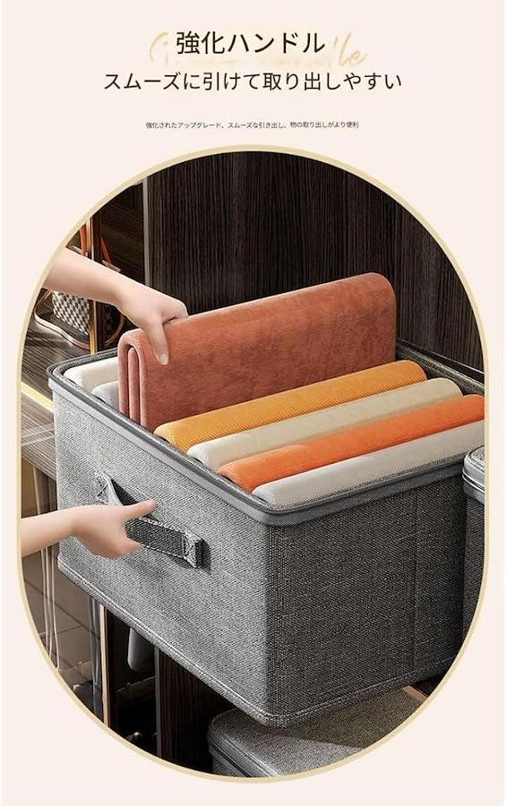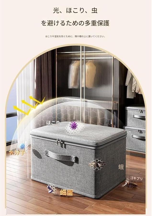 「高品質な素材」 この収納ボックスは通気性に優れた高品質素材で作られており、衣類や毛布、布団を湿気やホコリからしっかり保護します。