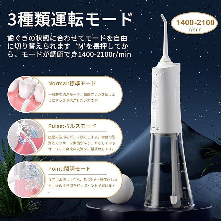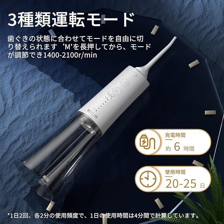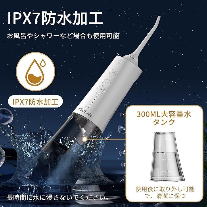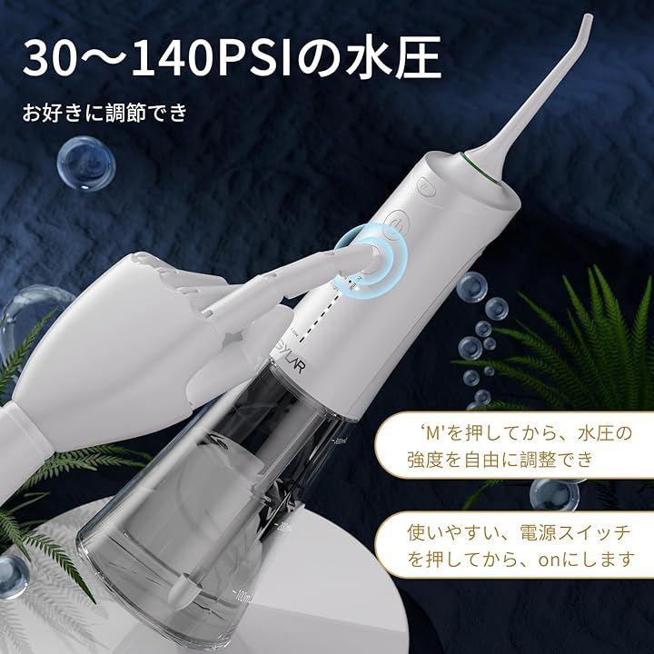 Cordless Oral Irrigator Jet Washer, Rechargeable, 3 Modes, 30-140 PSI, 6 Adjustable Pressure Levels, 300ML, 2000mAh Large Capacity, IPX7 Waterproof, Includes 4 Replacement Nozzles