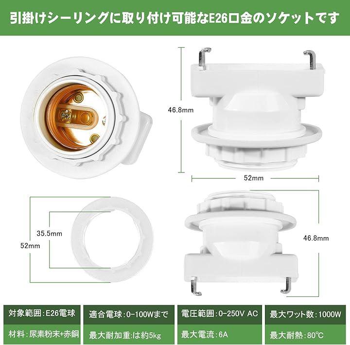 1.E26口金対応角型引掛シーリングアダプター,E26口金の電球であれば、お好みのLED電球、白熱電球をご使用いただけます。