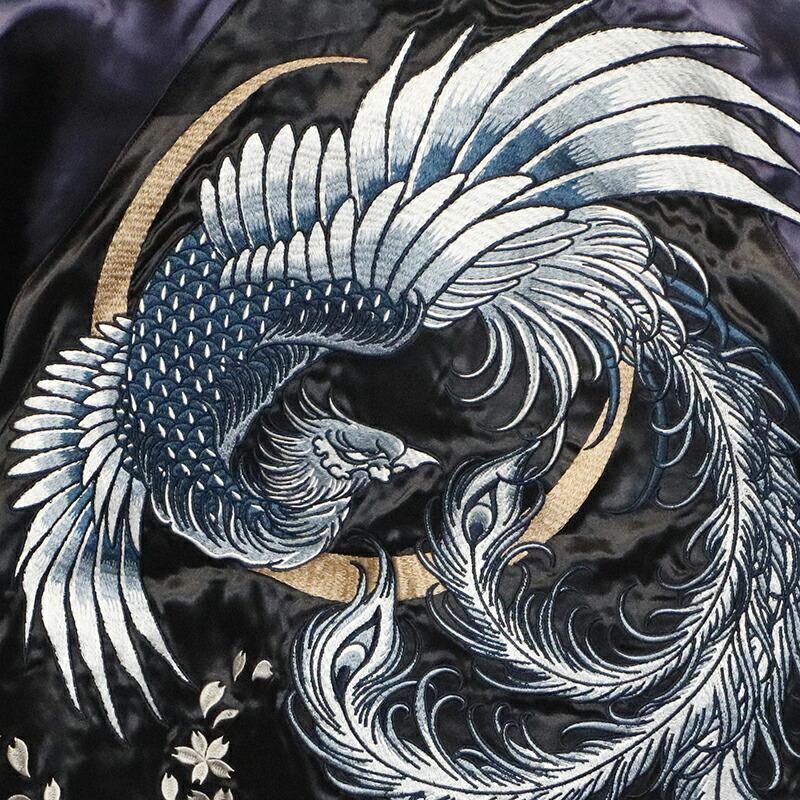 表面に鳳凰、リバーシブル面に龍を刺繍で落とし込んだリバーシブルスカジャン。