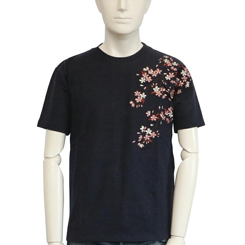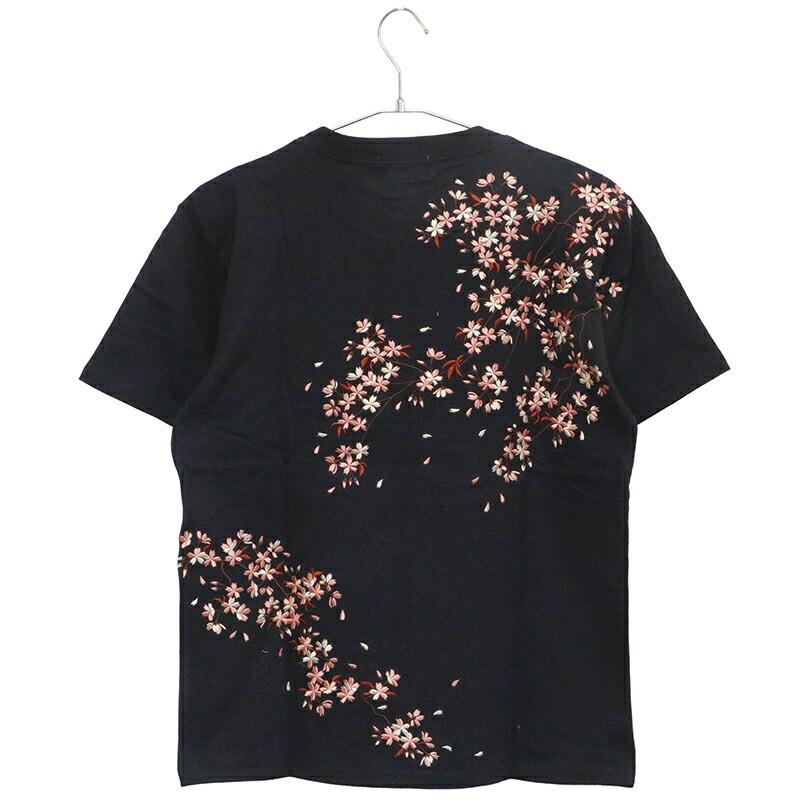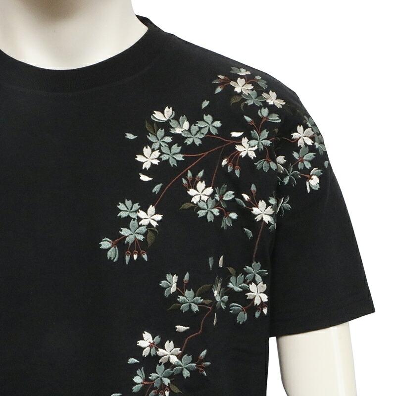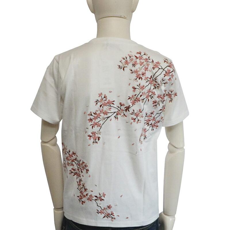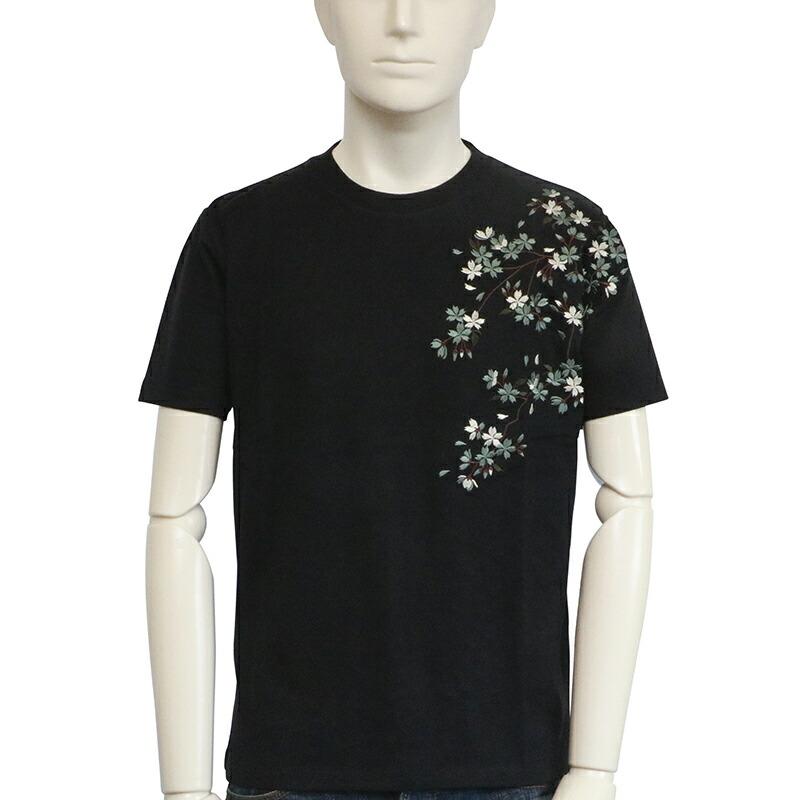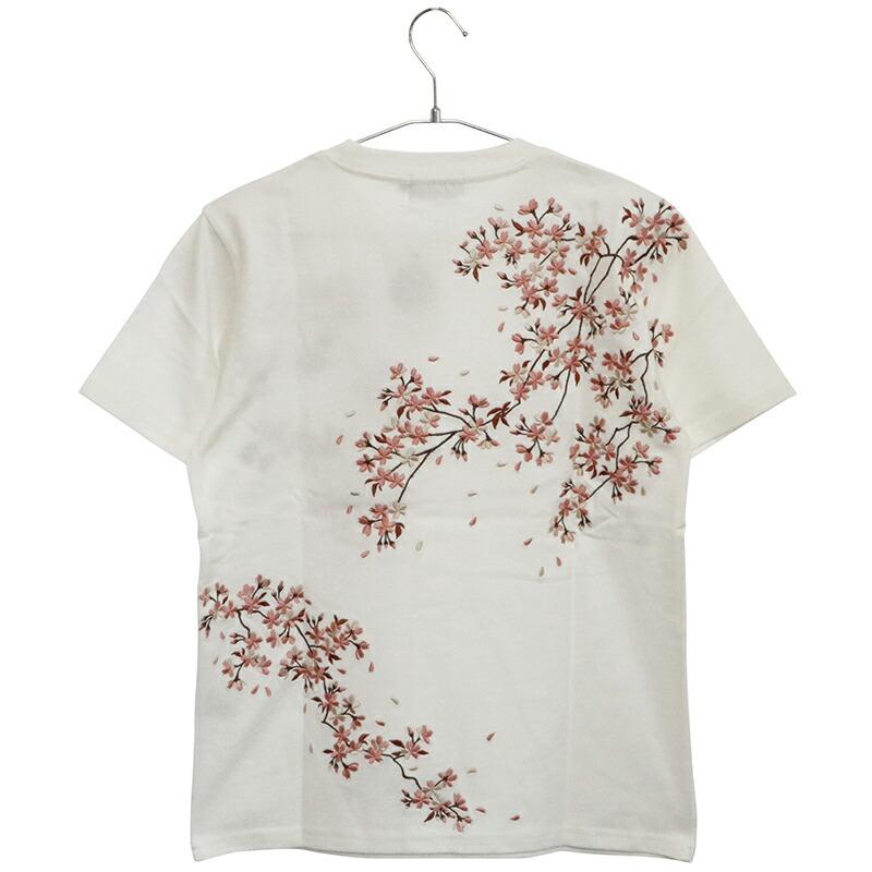 枝れ桜 柄 刺繍 和柄 半袖Tシャツ