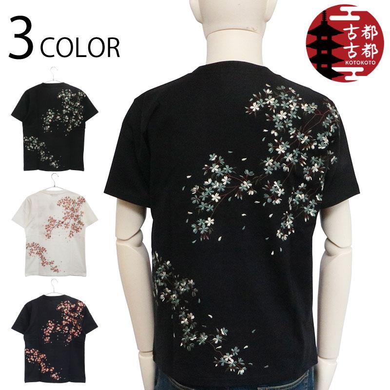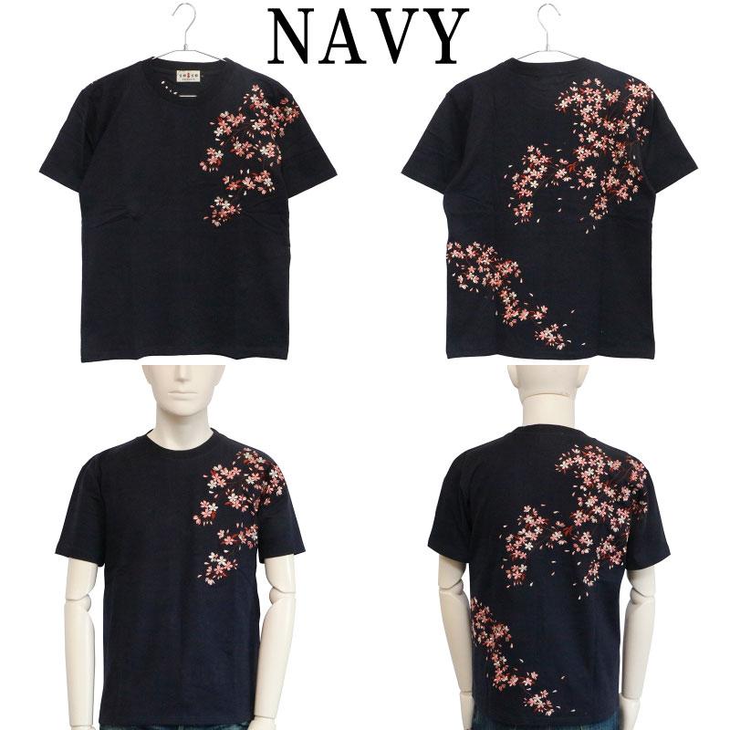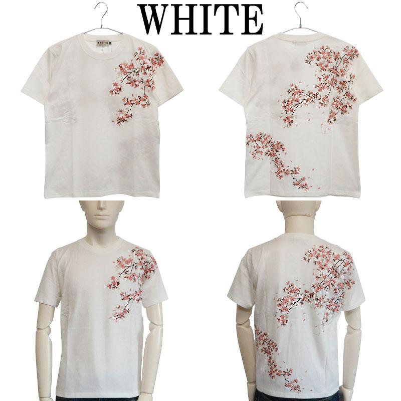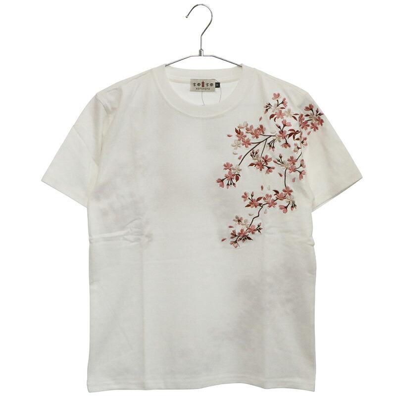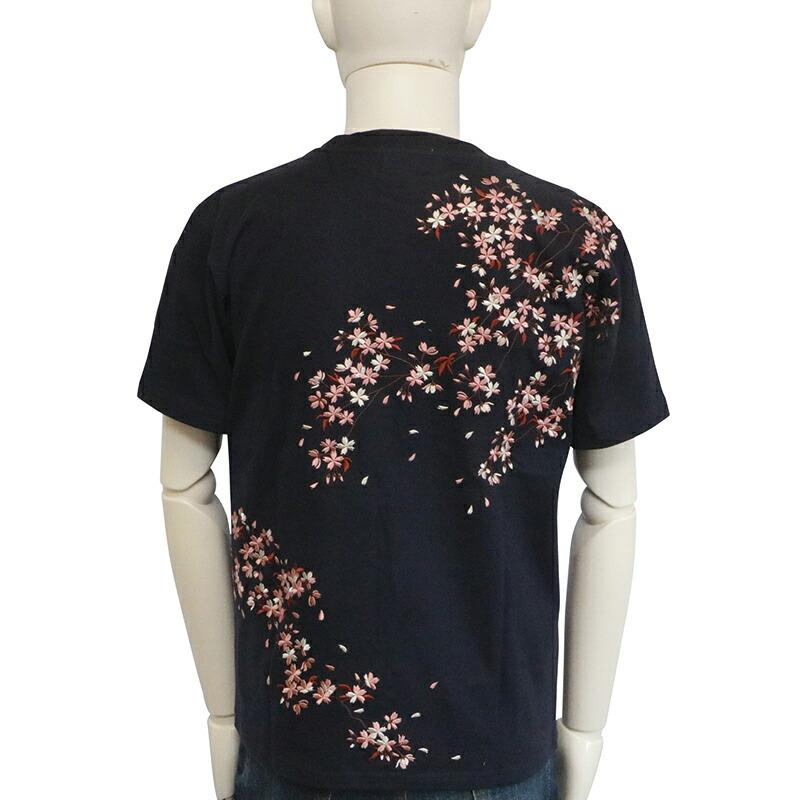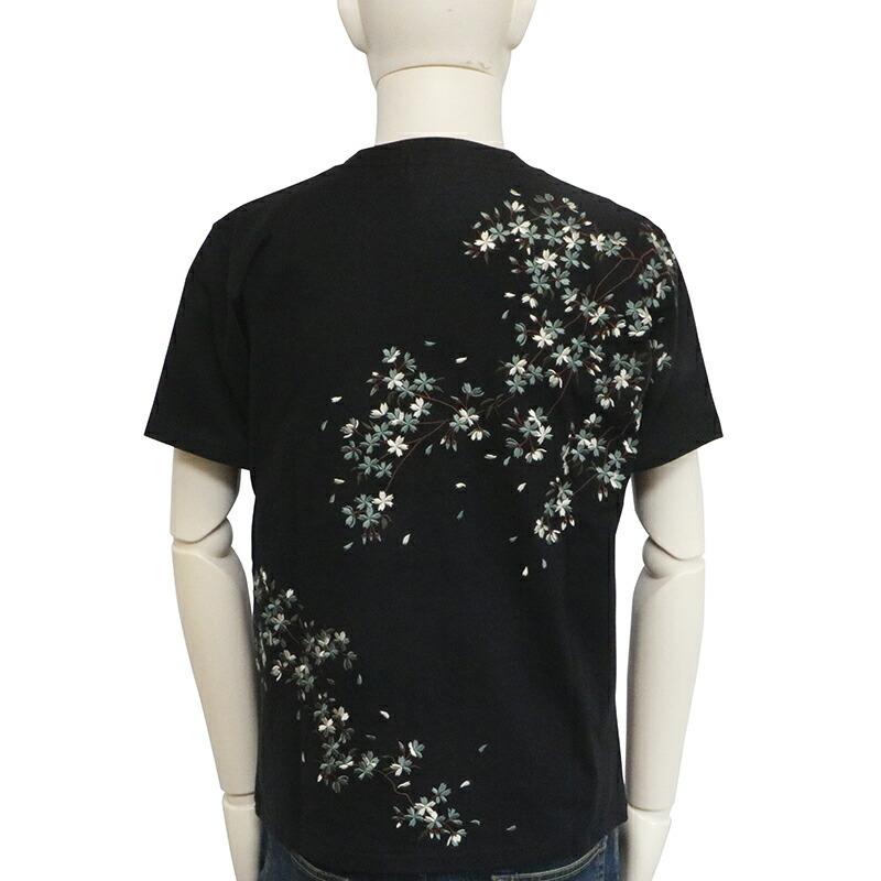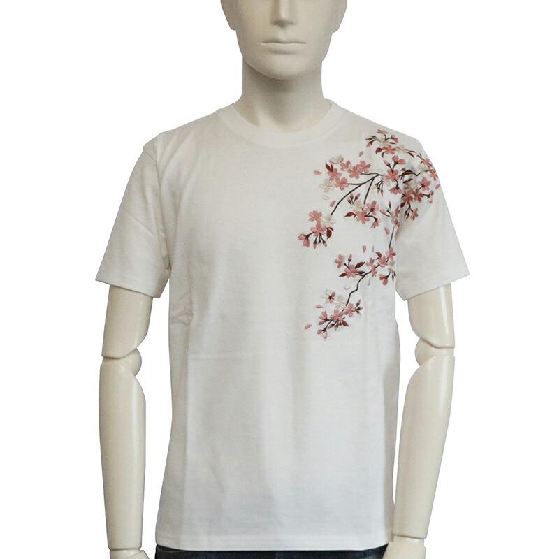 枝れ桜 柄 刺繍 和柄 半袖Tシャツ