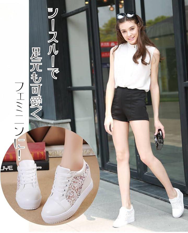 シンプルカラーのスニーカーもボリューム感のある厚底ソールと繊細なレースのシースルー素材で存在感抜群に。 厚底と4.5cmのインヒールで脚長効果も抜群。ボトムスを選ばずスタイルよく見せてくれます