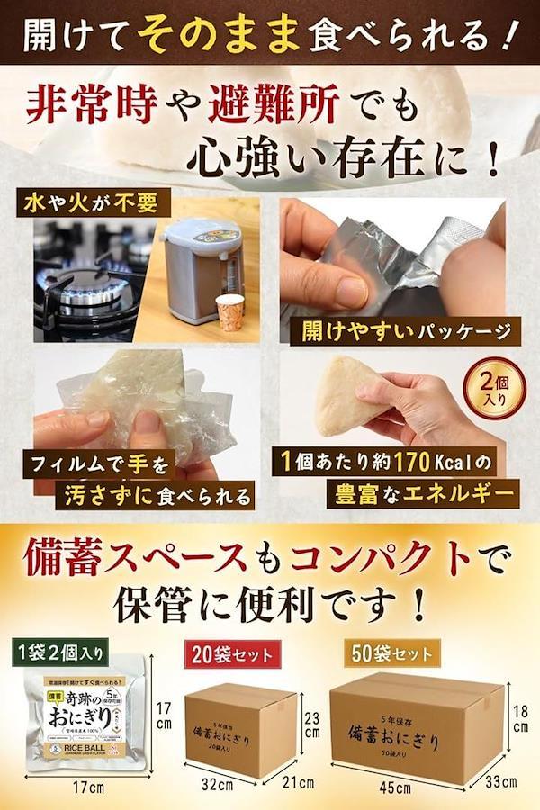 おにぎり1個あたり約170Kcalの豊富なエネルギーで、開封後そのまま食べられるため、備蓄食料として最適です。