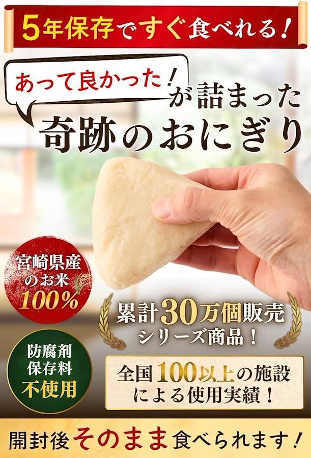 「累計30万個販売シリーズ商品」自衛隊や企業、病院など全国100以上の施設で使用実績のあるおにぎりと同じ原料が使われている備蓄おにぎりをご家庭向けにお届けします。