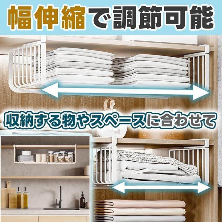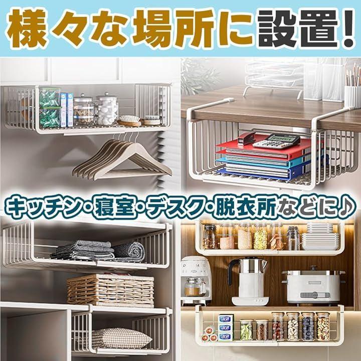 簡単設置: 棚板に差し込むだけで取り付け可能な吊り下げラック。