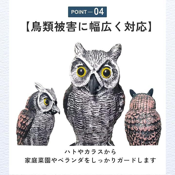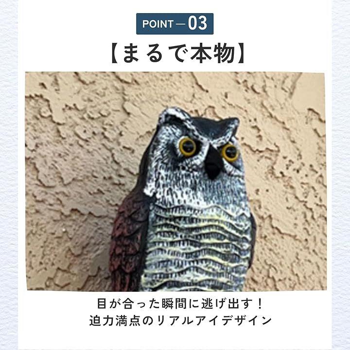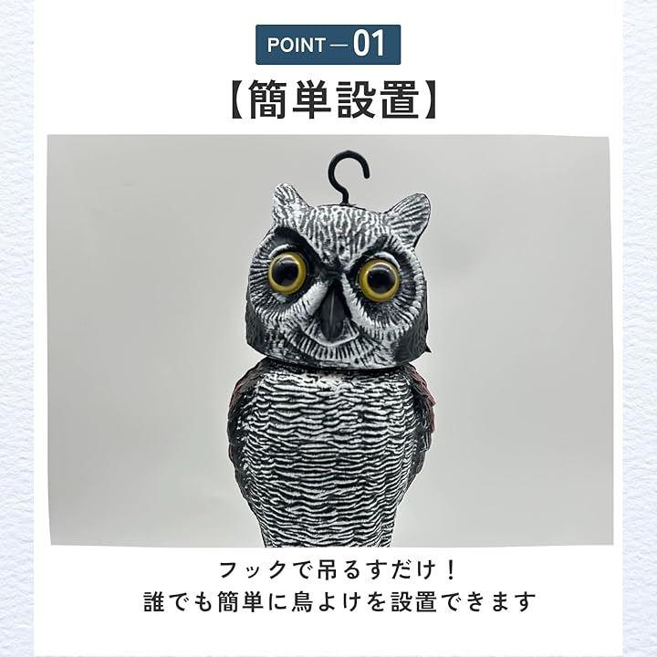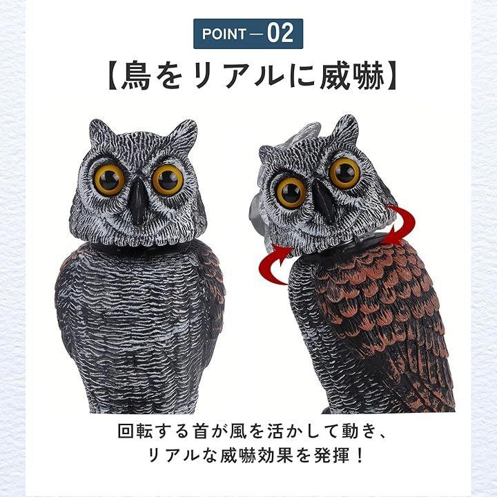 「鳥をリアルに威嚇」回転する首が風を活かして動き、リアルな威嚇効果を発揮。
