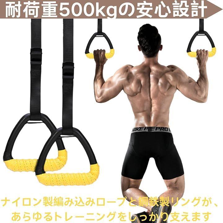 耐荷重500kgの安心設計 ナイロン製編み込みロープと鋼鉄製リングが、あらゆるトレーニングをしっかり支えます。