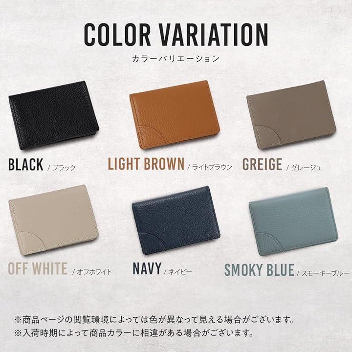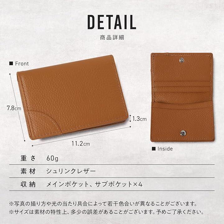 「カラー」ブラック、ライトブラウン、グレージュ、オフホワイト「素材」表地:シュリンクレザー/裏地:シュリンクレザー、ポリエステル「サイズ」横11.2cmx縦7.8cmx厚さ1.3cm「重量」60g