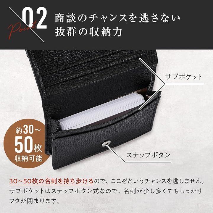 名刺を落とさないホルダー付きで、最大50枚の名刺を収納できます。
