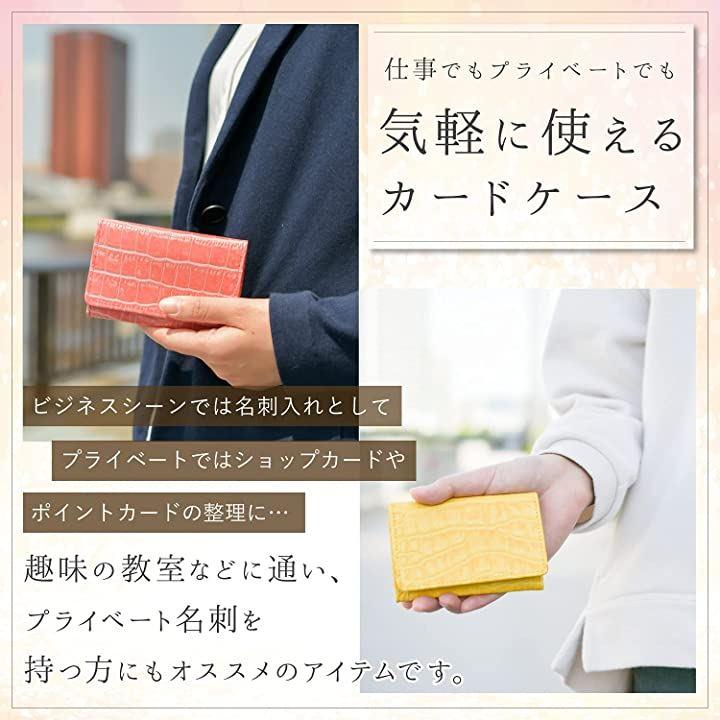 ・素材:型押し牛革 ・カラー:ブラック、グレージュ、ネイビー、グリーン、イエロー、ピンク ・サイズ:11cmx7.5cmx1.2cm ・ポケットの数:3つ ・用途:名刺入れ、カードケース ・ブランド名:ファクトリー禅桜